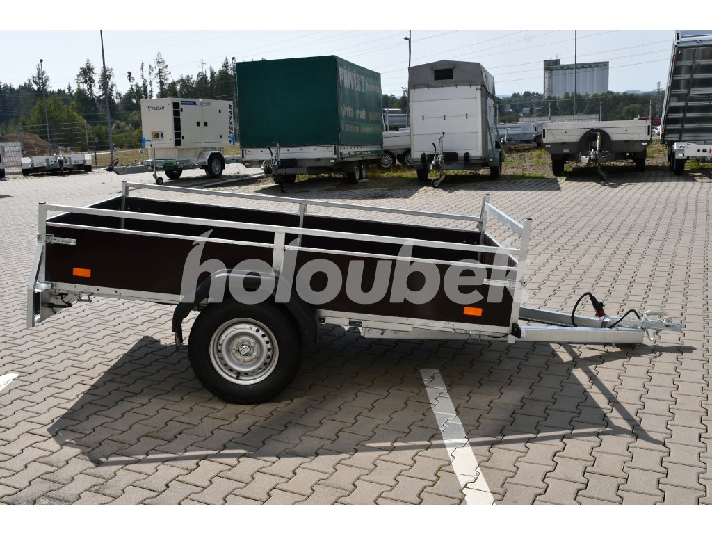 Nebržděný jednonápravový valníkový přívěs je základní model nákladního přívěsu s koly vedle ložné plochy, který vyniká robustním svařovaným rámem a je osazen kvalitními značkovými komponenty, které Vám zaručí bezkonkurenční spolehlivost. Dále tento přívěs vyniká svými výbornými jízdními vlastnostmi, a to díky svému nízkému těžišti. Vhodný je například pro převoz sypkých materiálů, stavebního materiálu, suti, kamení, písku, dřeva, palet, lehkých strojů atd.