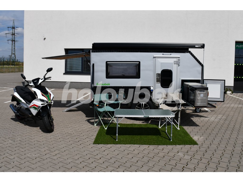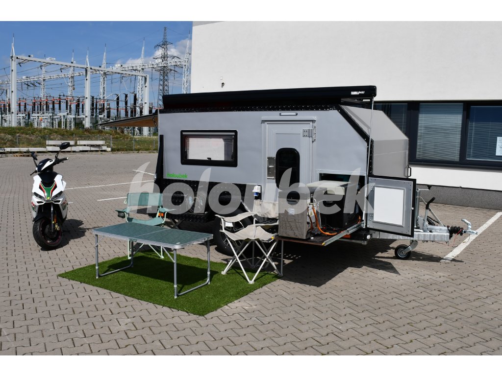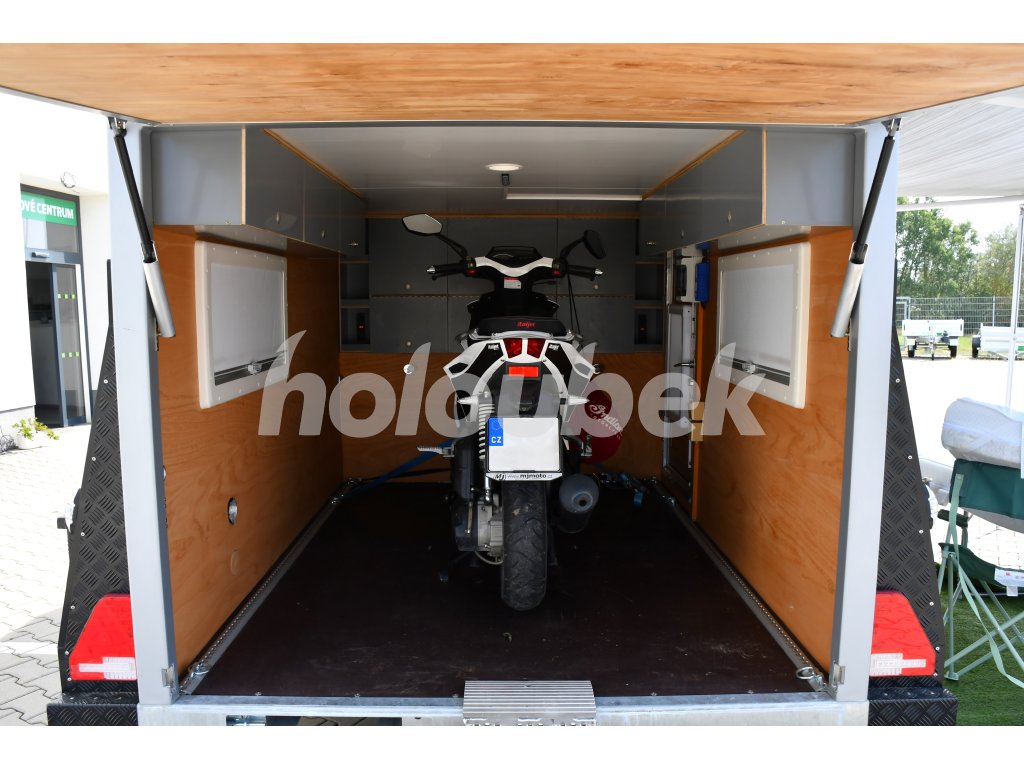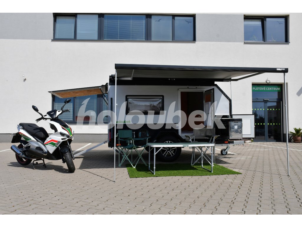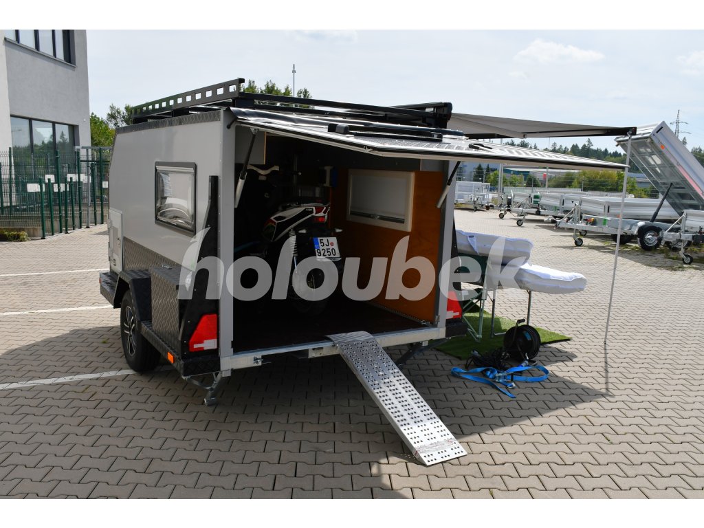 Obytný karavan do 1300 kg s možností přepravy motocyklu nebo jiného nákladu. Je téměř nový, použitý byl velmi málo. Jedná se o karavan s mimořádnou kvalitou a spolehlivostí. Karavan je ideální pro dobrodružné povahy, kteří rádi cestují a zkoumají své okolí.